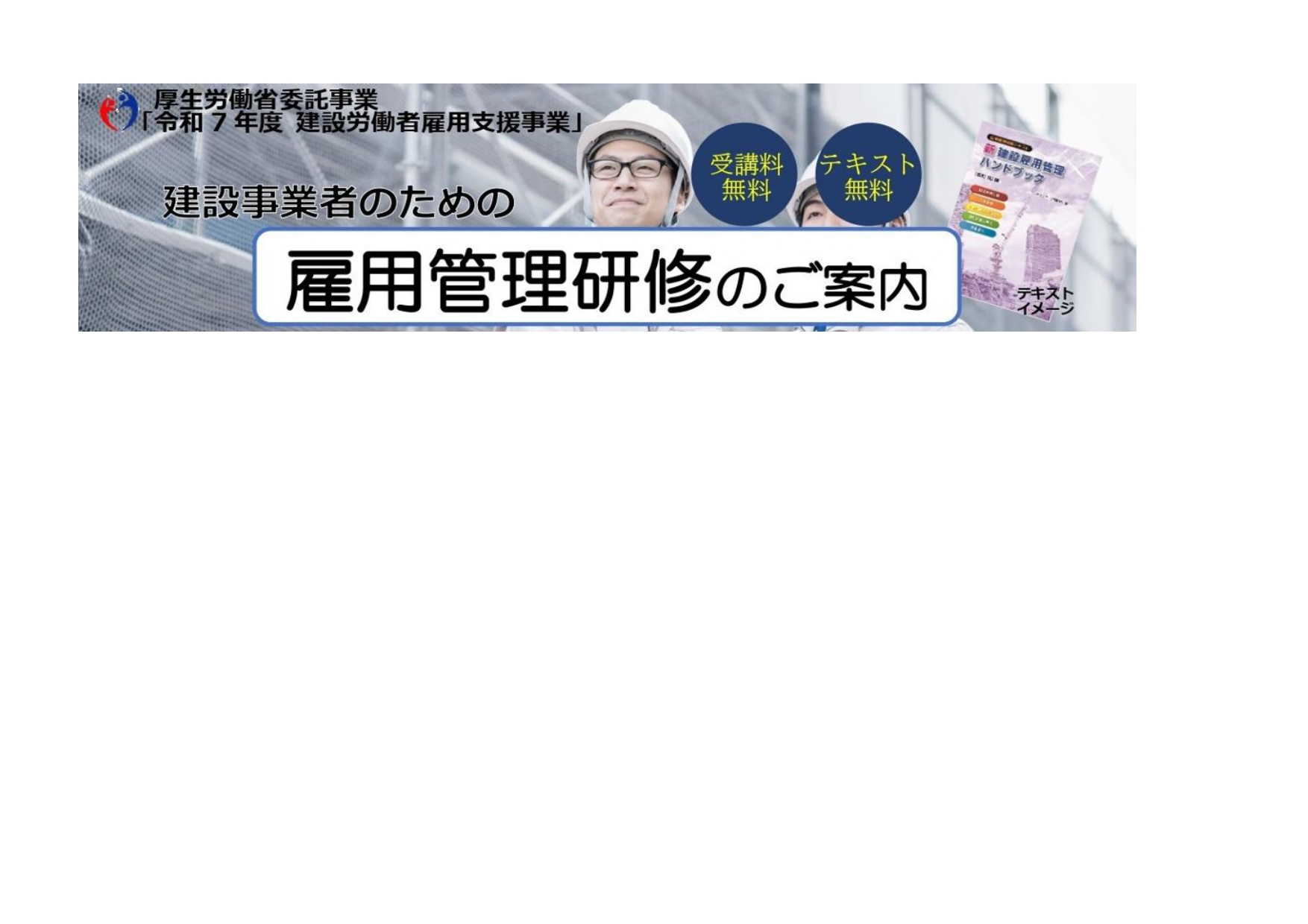 雇用管理研修とは厚生労働省委託事業として「建設雇用改善法」に基づき、